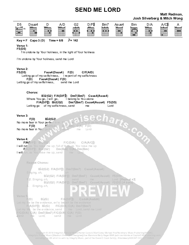 Download the PDF Chord Charts for Send Me Lord (Live) by Matt Redman, from the album Let There Be Wonder.