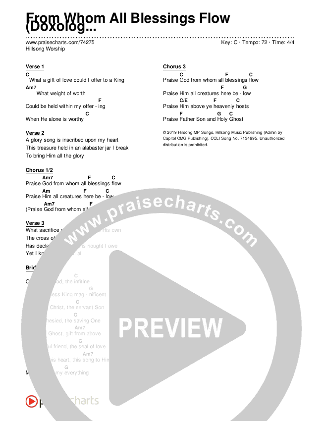 From Whom All Blessings Flow (Doxology) (Simplified) Chords PDF (Hillsong Worship)