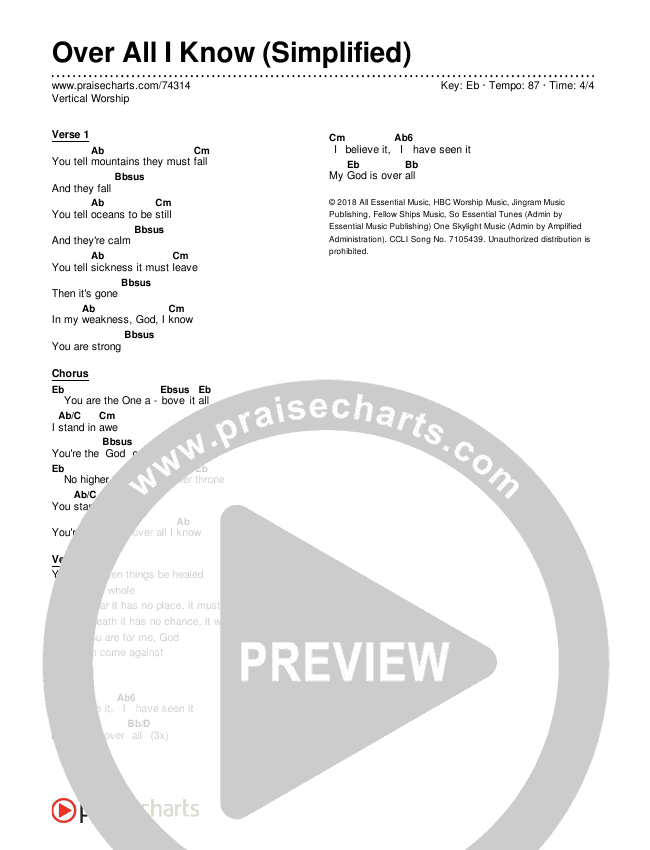 Download the PDF Chord Charts for Over All I Know (Simplified) by Vertical Worship, from the album Simplified Worship.