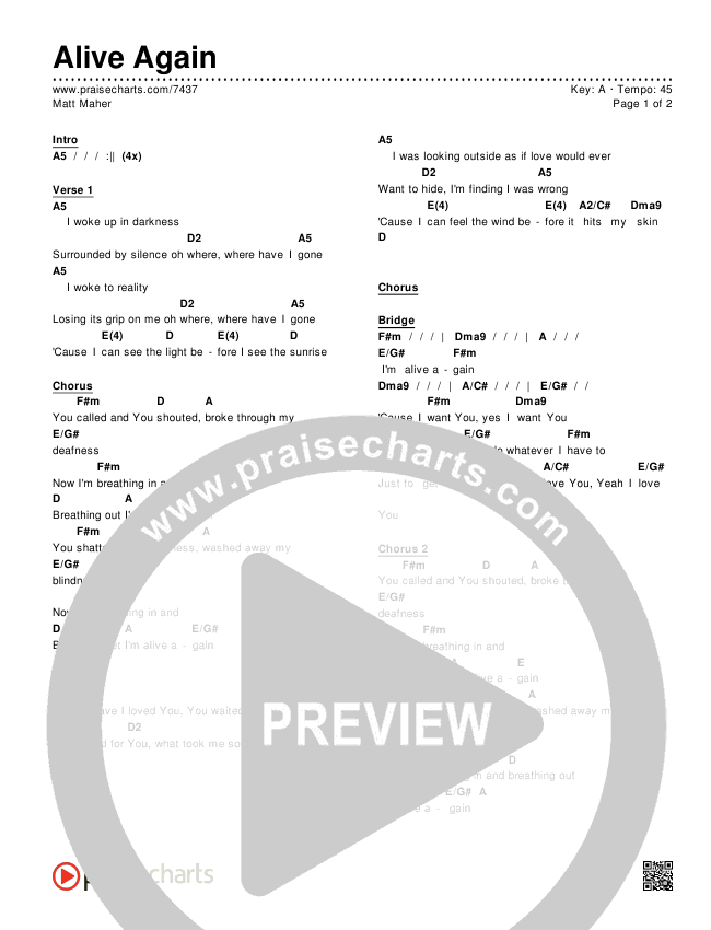 Alive Again Chords PDF (Matt Maher)