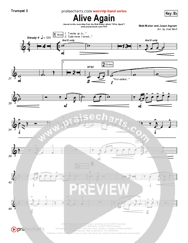 Alive Again Trumpet Sheet Music PDF (Matt Maher)