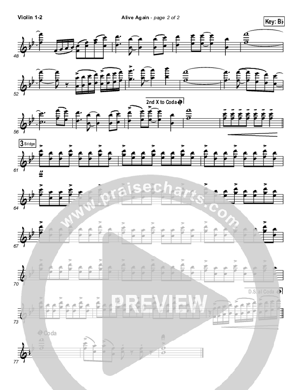 Download the Violin sheet music for Alive Again by Matt Maher, from the album Alive Again. This song was arranged by Joel Mott in the key of Bb, C.