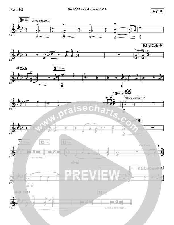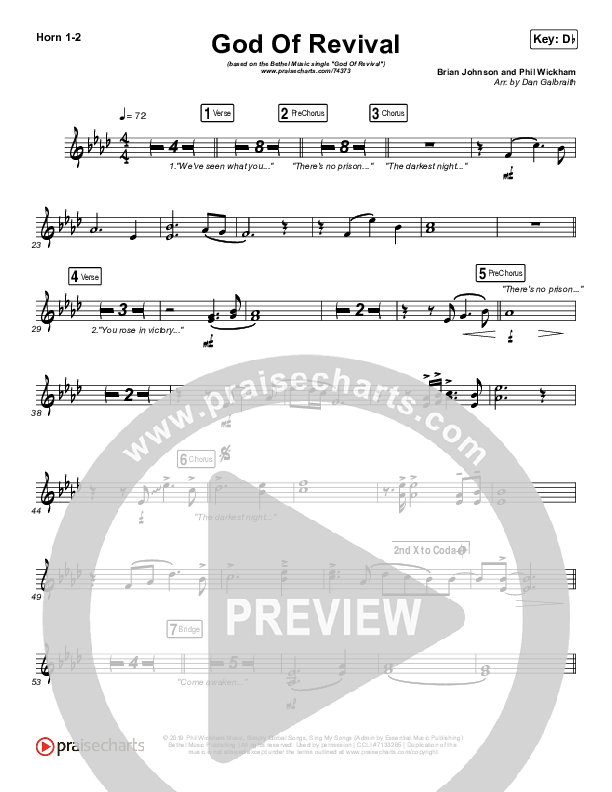 Download the Orchestration brass parts for God Of Revival (Live) by Bethel Music, from the album Revival's In The Air. This song was arranged by Daniel Galbraith in the key of Bb, C, Db.
