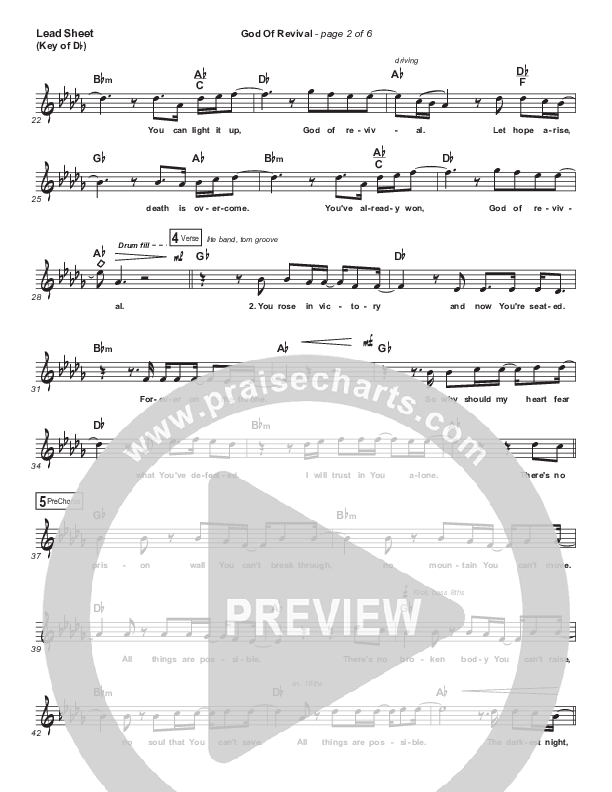 Download the sheet music for God Of Revival (Live) by Bethel Music, from the album Revival's In The Air. This song was arranged by Daniel Galbraith in the key of Bb, C, Db.