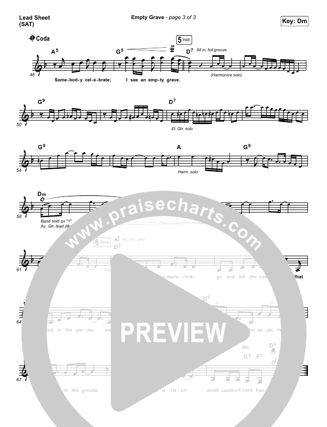 Download the sheet music for Empty Grave by Zach Williams, from the album Empty Grave - Single. This song was arranged by Dustin Loehrs / Daniel Galbraith / Grant Wall in the key of Cm, Dm.