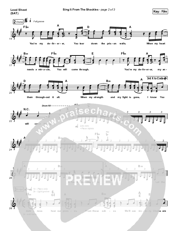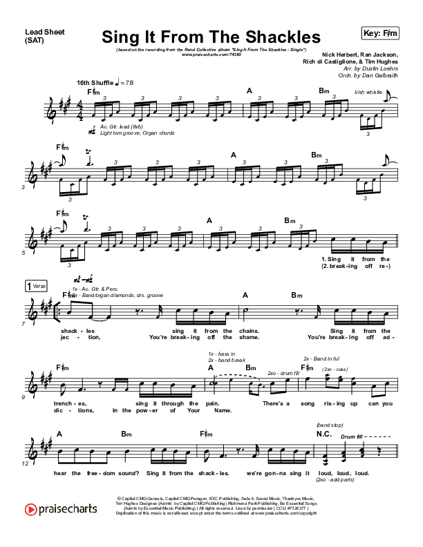 Download the sheet music for Sing It From The Shackles by Rend Collective, from the album Sing It From The Shackles. This song was arranged by Dustin Loehrs in the key of F#m, Fm.