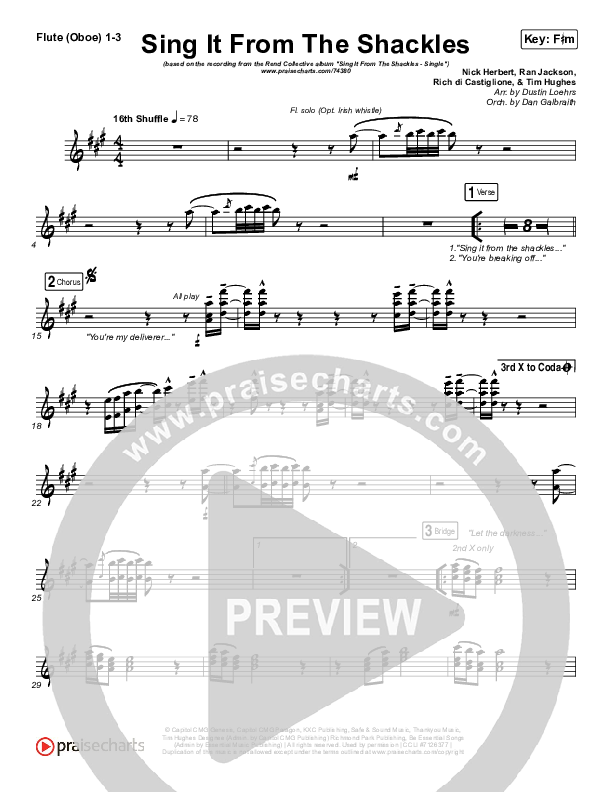 Download the Orchestration wind parts for Sing It From The Shackles by Rend Collective, from the album Sing It From The Shackles. This song was arranged by Dustin Loehrs in the key of F#m, Fm.