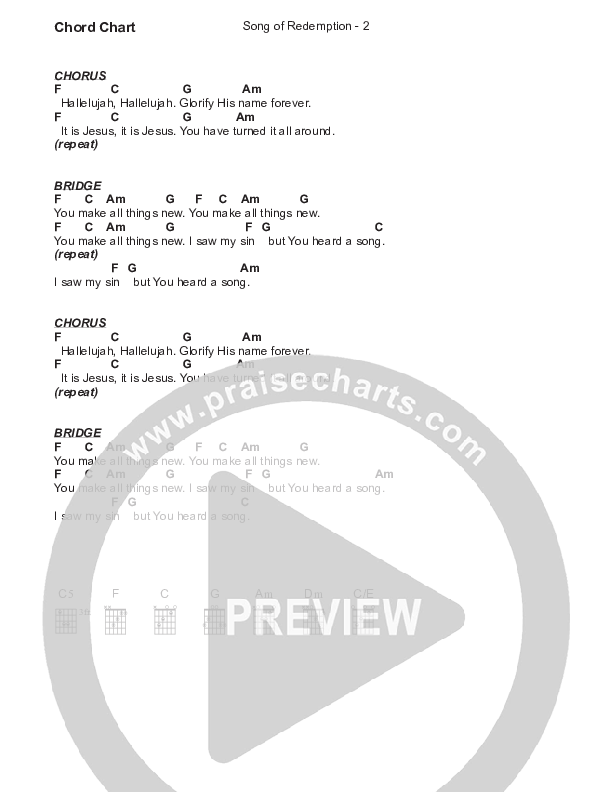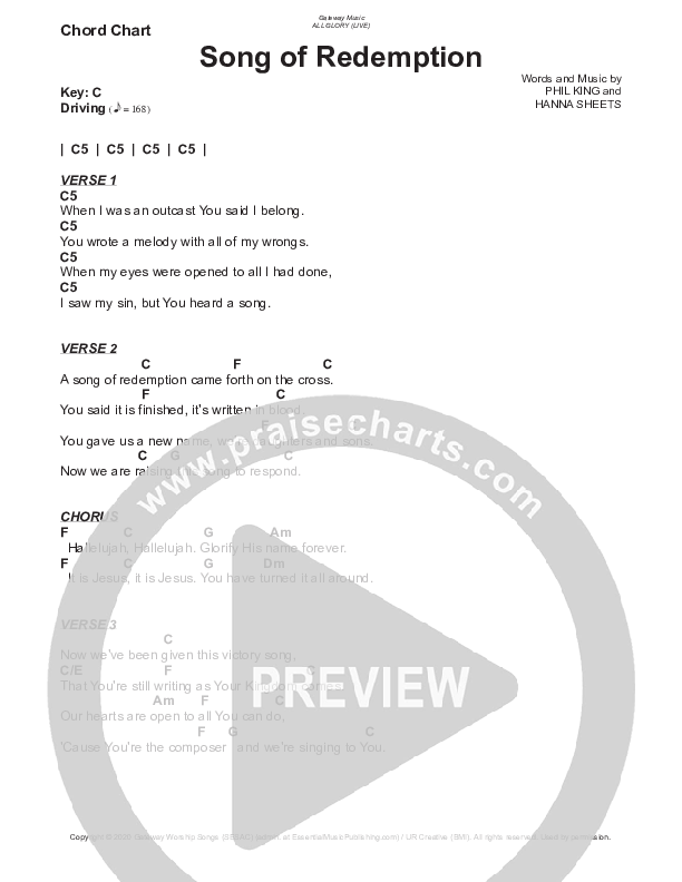 Download the PDF Chord Charts for Song Of Redemption by Phil King, from the album All Glory.