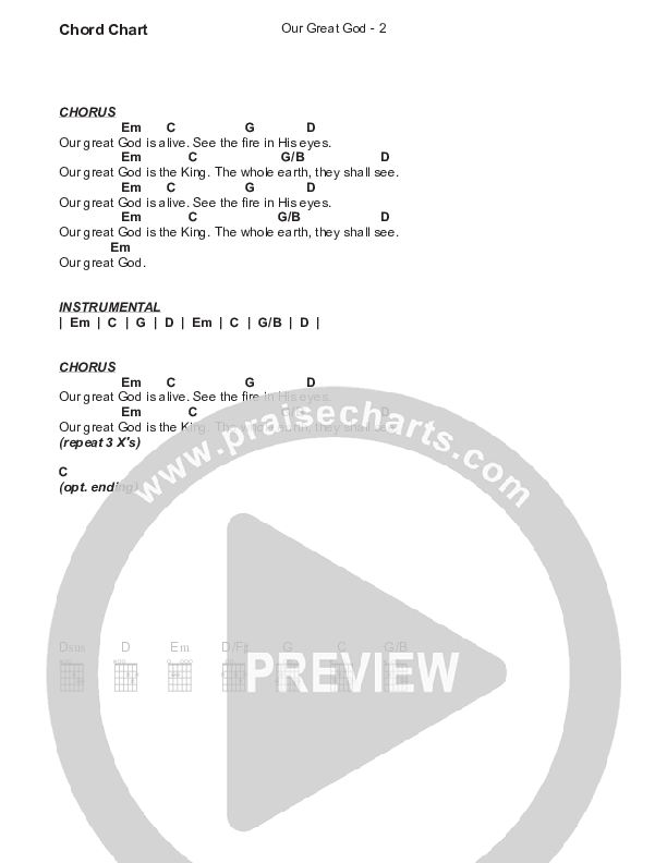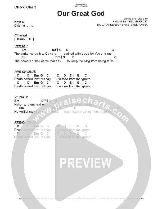 Download the PDF Chord Charts for Our Great God by Phil King, from the album All Glory.