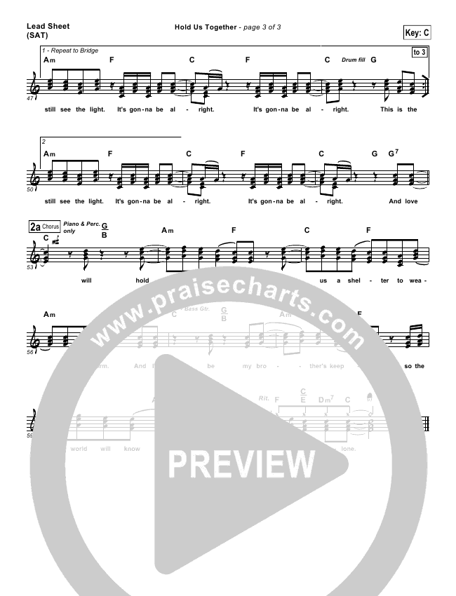 Download the sheet music for Hold Us Together by Matt Maher, from the album Alive Again. This song was arranged by Erik Foster in the key of Bb, C.