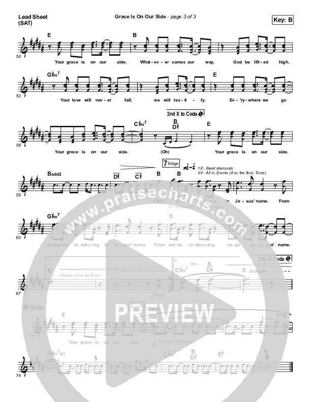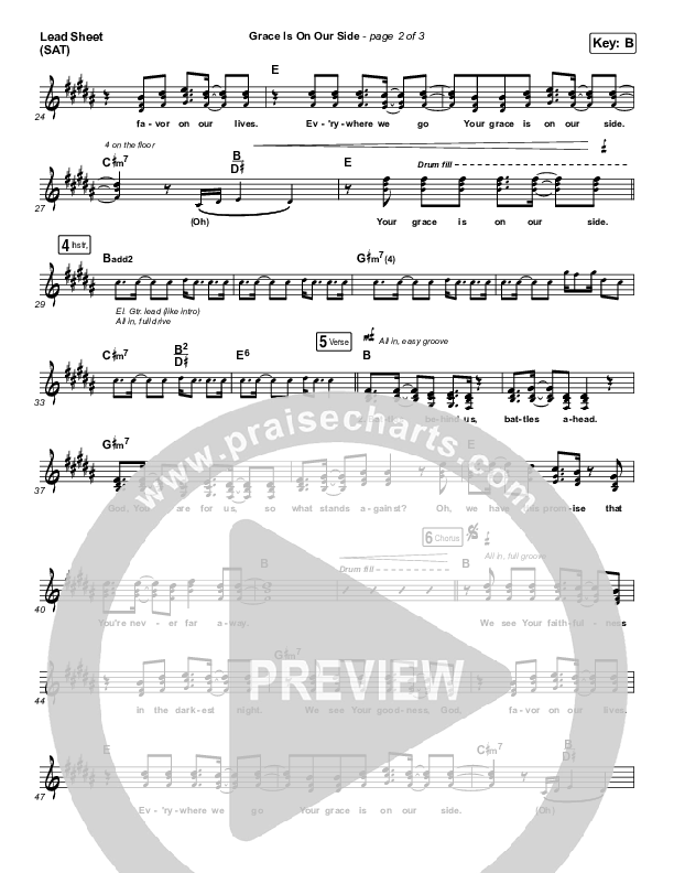 Download the sheet music for Grace Is On Our Side by Vertical Worship, from the album Grace Is On Our Side. This song was arranged by Grant Wall in the key of B, Bb.