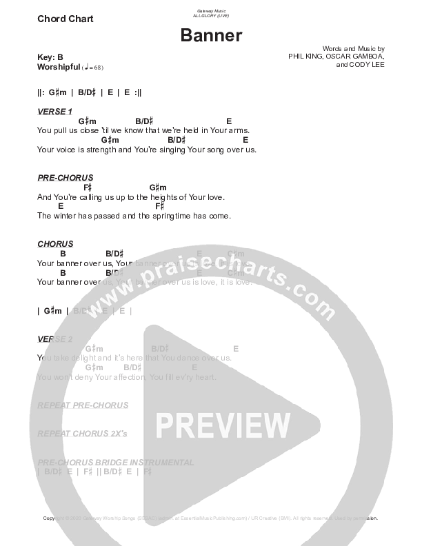 Download the PDF Chord Charts for Banner by Phil King, from the album All Glory.