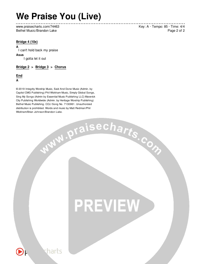 We Praise You (Live) Chords PDF (Bethel Music / Brandon Lake)