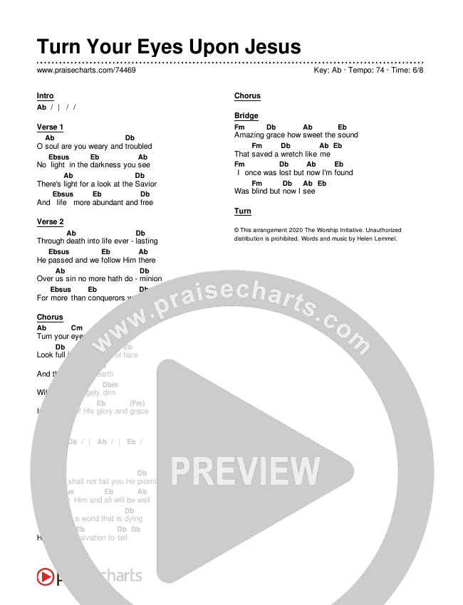 Download the PDF Chord Charts for Turn Your Eyes Upon Jesus by Shane & Shane/The Worship Initiative, from the album Hymns In The Round.