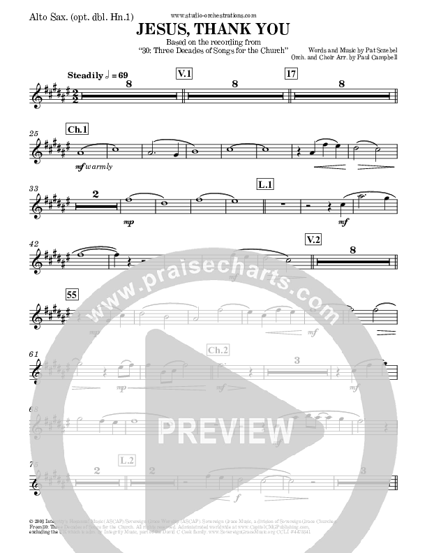 Jesus Thank You Alto Sax Sheet Music PDF (Brook Hills Music / Sovereign Grace)