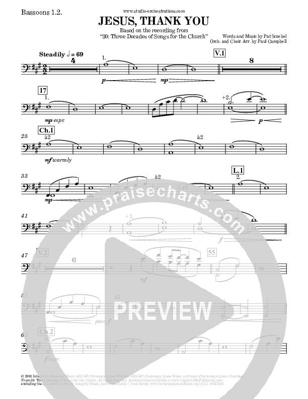 Download the Orchestration for Jesus Thank You by Brook Hills Music / Sovereign Grace, from the album 30: Three Decades Of Songs For The Church. This song was arranged by Paul Campbell in the key of A, G.
