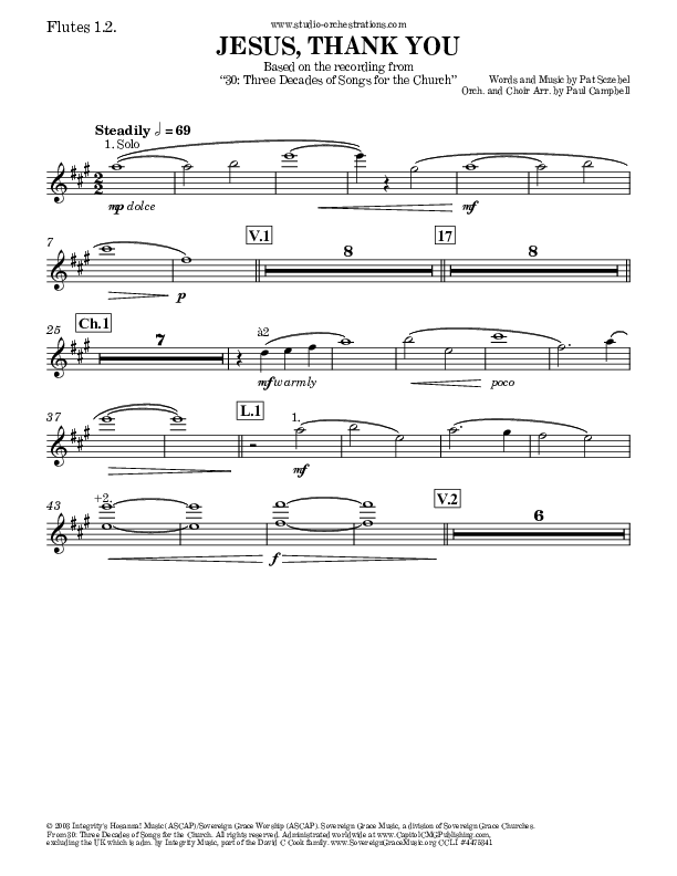 Download the Flute sheet music for Jesus Thank You by Brook Hills Music / Sovereign Grace, from the album 30: Three Decades Of Songs For The Church. This song was arranged by Paul Campbell in the key of A, G.