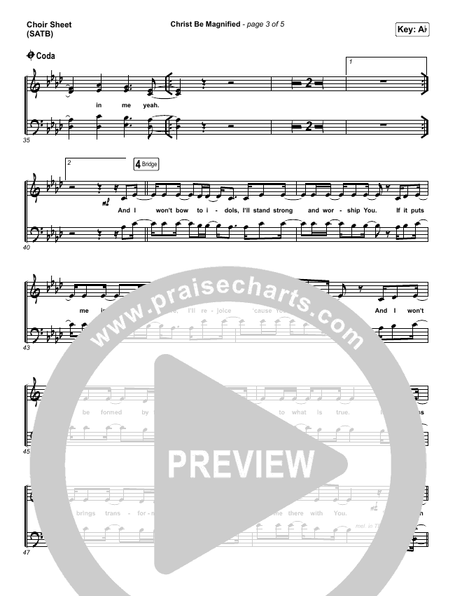 Download the Choir Sheet for Christ Be Magnified (Live) by Bethel Music / Cory Asbury, from the album Christ Be Magnified - Single. This song was arranged by Dustin Loehrs / Daniel Galbraith in the key of Ab, F, G.