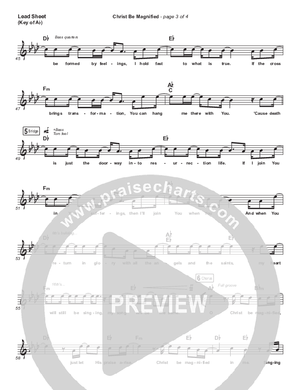 Download the sheet music for Christ Be Magnified (Live) by Bethel Music / Cory Asbury, from the album Christ Be Magnified - Single. This song was arranged by Dustin Loehrs / Daniel Galbraith in the key of Ab, F, G.