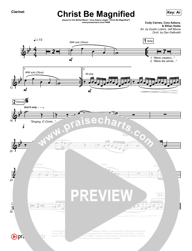 Download the Orchestration wind parts for Christ Be Magnified (Live) by Bethel Music / Cory Asbury, from the album Christ Be Magnified - Single. This song was arranged by Dustin Loehrs / Daniel Galbraith in the key of Ab, F, G.