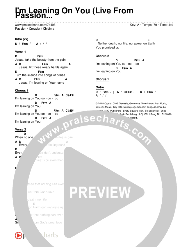 I'm Leaning On You (Live From Passion 2020) Chords PDF (Passion / Crowder / Chidima)