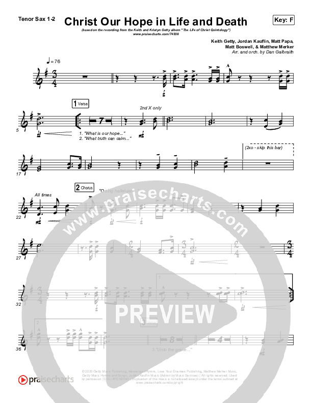 Christ Our Hope In Life And Death Tenor Sax Sheet Music PDF (Matt Papa / Keith & Kristyn Getty)