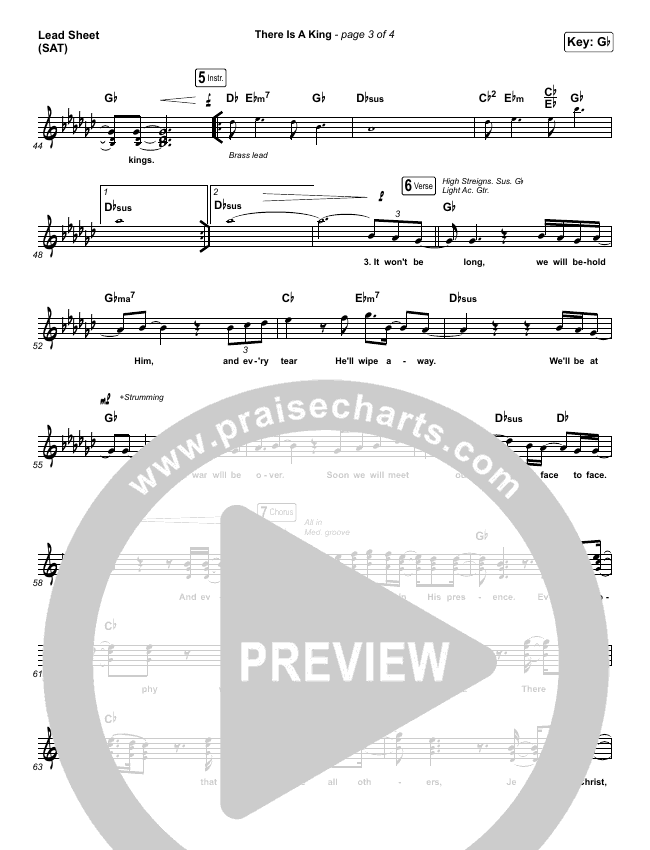 Download the sheet music for There Is A King by Elevation Worship, from the album Graves Into Gardens. This song was arranged by Dustin Loehrs / Daniel Galbraith in the key of D, E, Eb, F, Gb.
