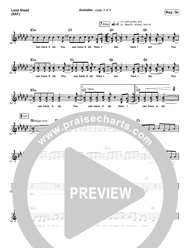 Download the sheet music for Available by Elevation Worship, from the album Graves Into Gardens. This song was arranged by Daniel Galbraith in the key of G, Gb.