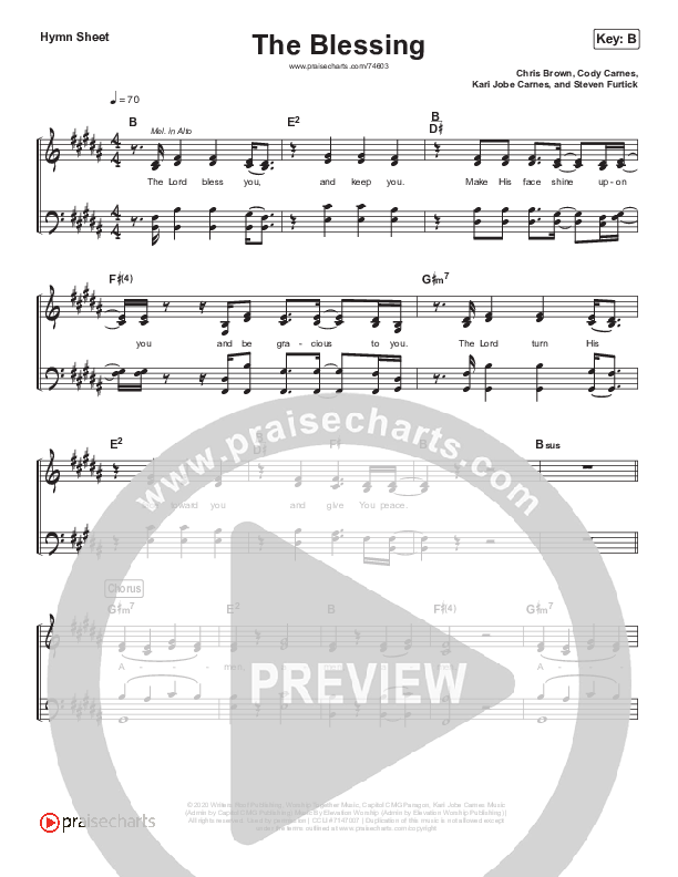 The Blessing (Simplified) Hymn Sheet (Elevation Worship / Kari Jobe / Cody Carnes)