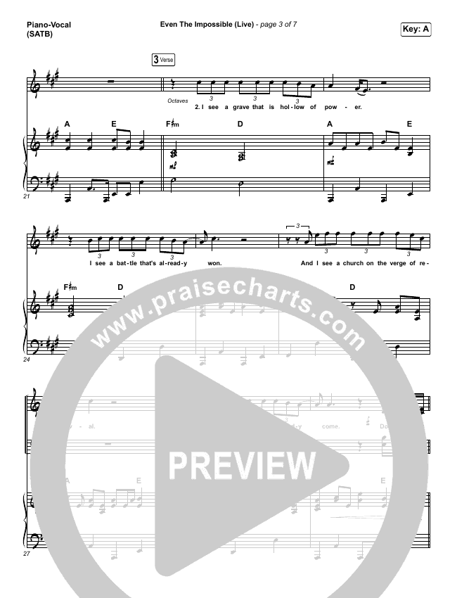 Download the sheet music for Even The Impossible (Live) by Mack Brock, from the album Space. This song was arranged by Daniel Galbraith in the key of A, Ab.