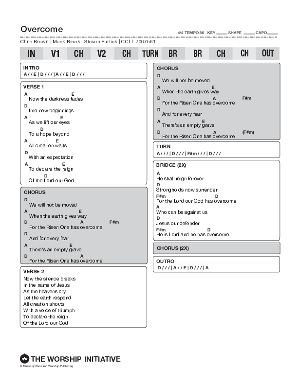 Download the PDF Chord Charts for Overcome by Shane & Shane/The Worship Initiative, from the album The Worship Initiative Volume 20.