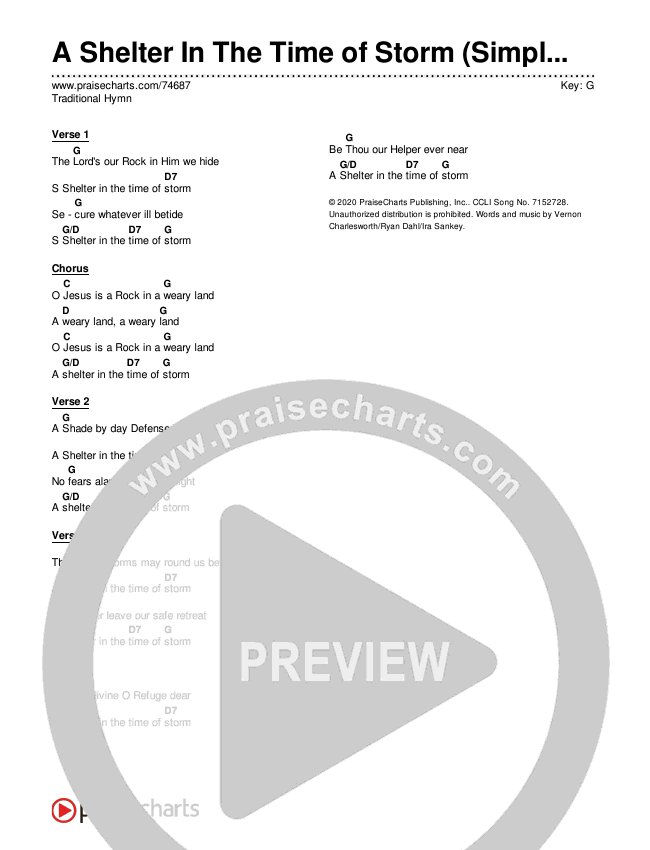 Download the PDF Chord Charts for A Shelter In The Time of Storm (Simplified) by Traditional Hymn, from the album Simplified Worship.