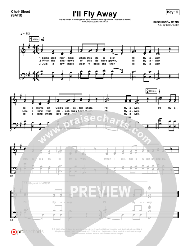 Download the Choir Sheet for I'll Fly Away (Simplified) by Traditional Hymn, from the album Simplified Worship. This song was arranged by Erik Foster in the key of F, G.