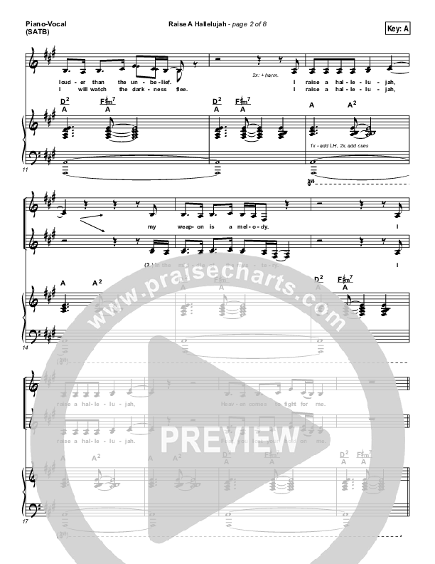 Download the sheet music for Raise A Hallelujah by Bethel Music / Jonathan David Helser / Melissa Helser, from the album Peace. This song was arranged by Daniel Galbraith in the key of A, Bb.
