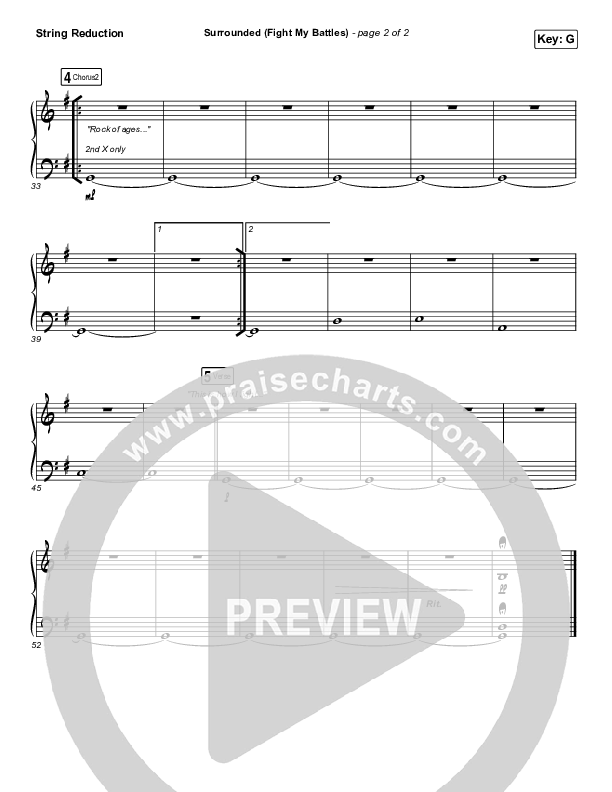 Download the Orchestration string parts for Surrounded (Fight My Battles) by Bethel Music / Kari Jobe, from the album Peace. This song was arranged by Daniel Galbraith in the key of F, G.