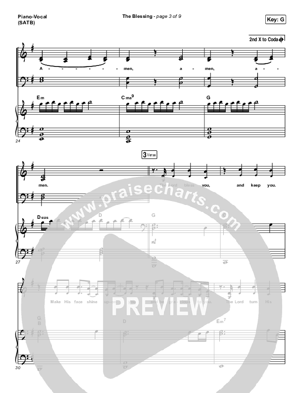 Download the sheet music for The Blessing by Bethel Music / We The Kingdom, from the album Peace. This song was arranged by Daniel Galbraith in the key of Ab, G.