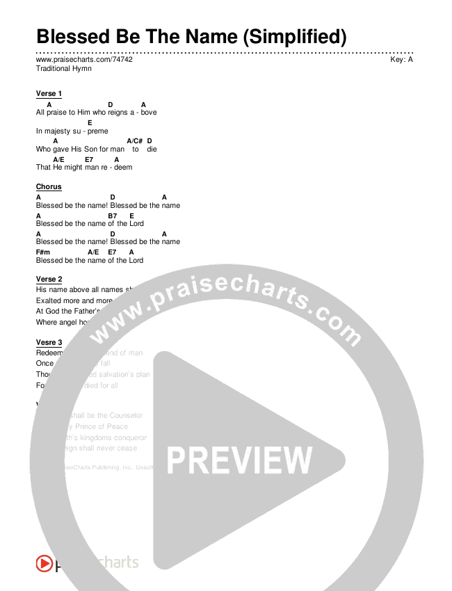Blessed Be The Name (Simplified) Chord Chart (Traditional Hymn)