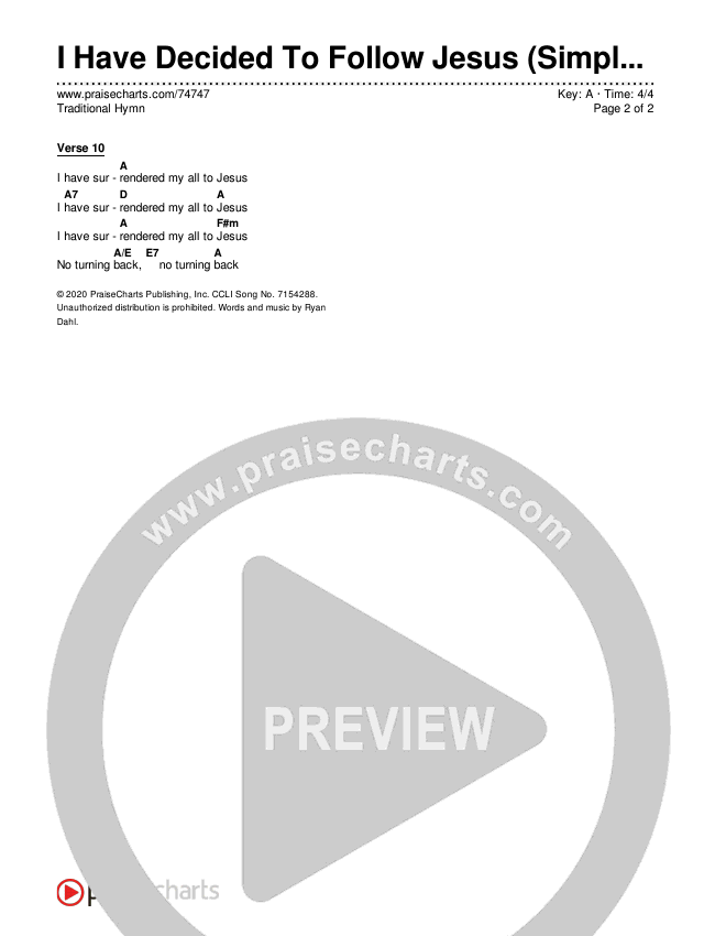 I Have Decided To Follow Jesus (Simplified) Chords PDF (Traditional Hymn)