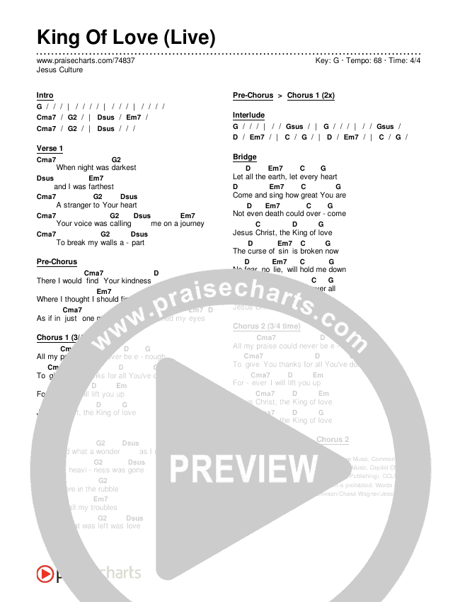 King Of Love (Live) Chords PDF (Jesus Culture)