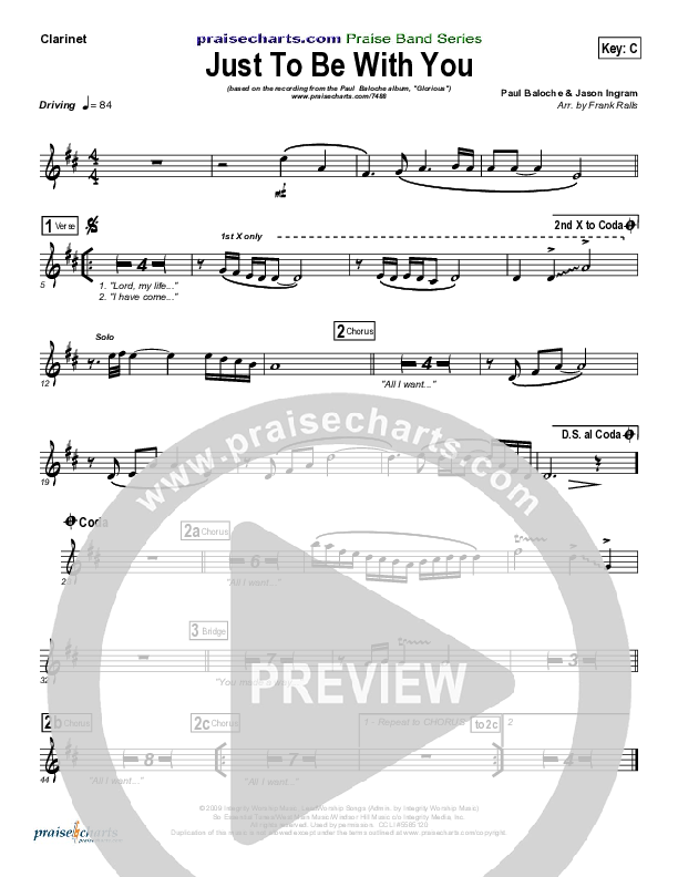 Download the Orchestration for Just To Be With You by Paul Baloche, from the album Glorious. This song was arranged by Frank Ralls in the key of C, D.