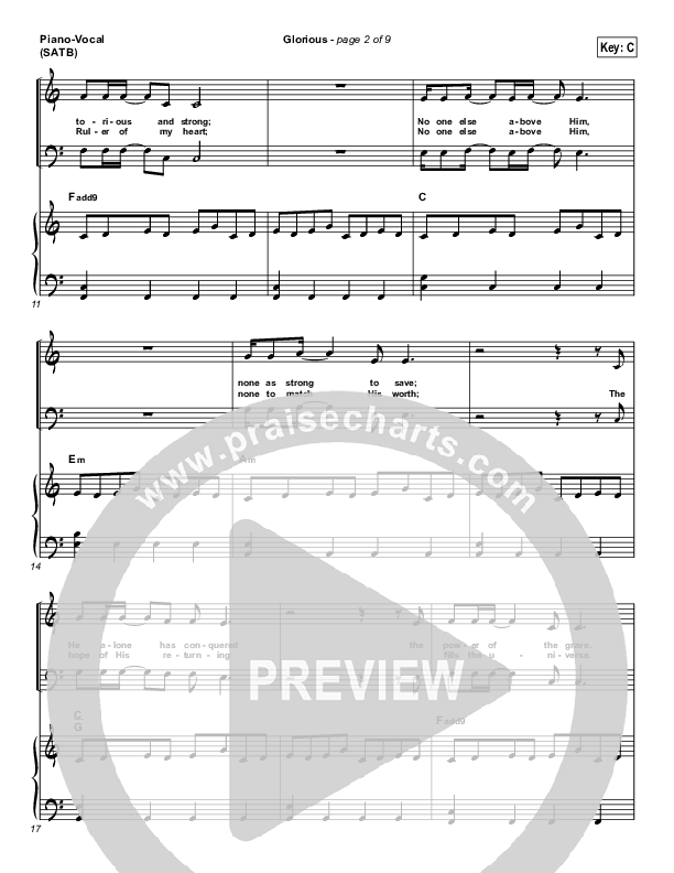 Download the sheet music for Glorious by Paul Baloche, from the album Glorious. This song was arranged by Daniel Galbraith in the key of Bb, C.