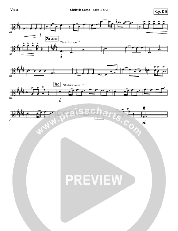 Download the Viola sheet music for Christ Is Come by Big Daddy Weave, from the album Christ Is Come. This song was arranged by Daniel Galbraith / Aaron Wade in the key of D, Eb.