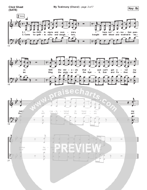 Download the Choir Sheet for My Testimony (Choral Anthem SATB) by Elevation Worship / Arr. Luke Gambill, from the album Graves Into Gardens. This song was arranged by Luke Gambill / Daniel Galbraith in the key of Bb.