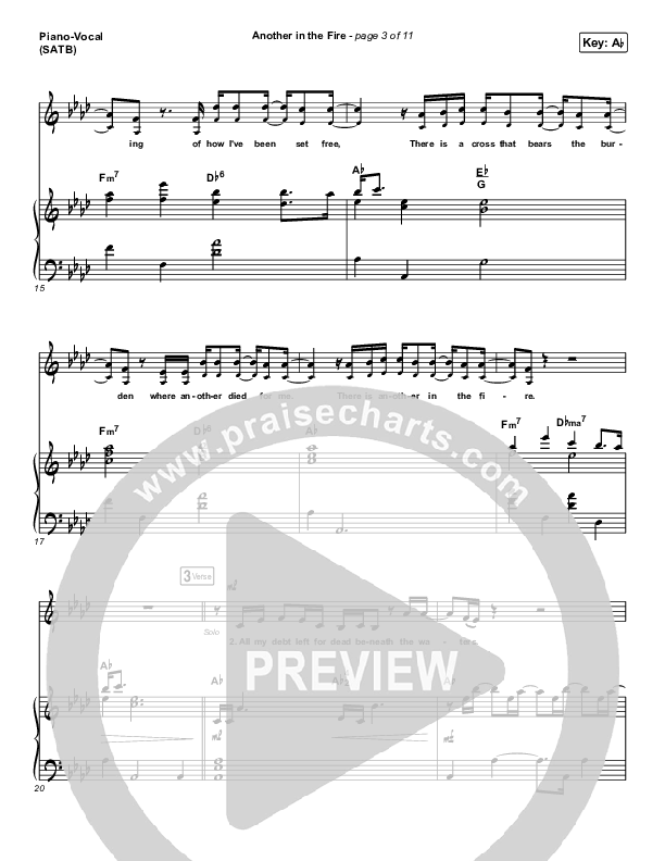Download the sheet music for Another In The Fire by Hillsong UNITED / TAYA, from the album Another In The Fire. This song was arranged by Grant Wall in the key of Ab, G.