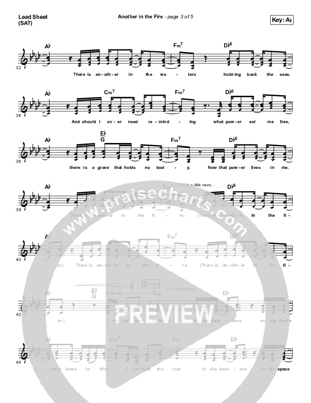 Download the sheet music for Another In The Fire by Hillsong UNITED / TAYA, from the album Another In The Fire. This song was arranged by Grant Wall in the key of Ab, G.