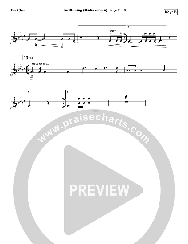 The Blessing (Studio) Bari Sax Sheet Music PDF (Kari Jobe / Cody Carnes)