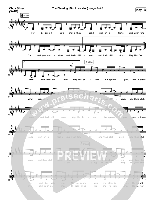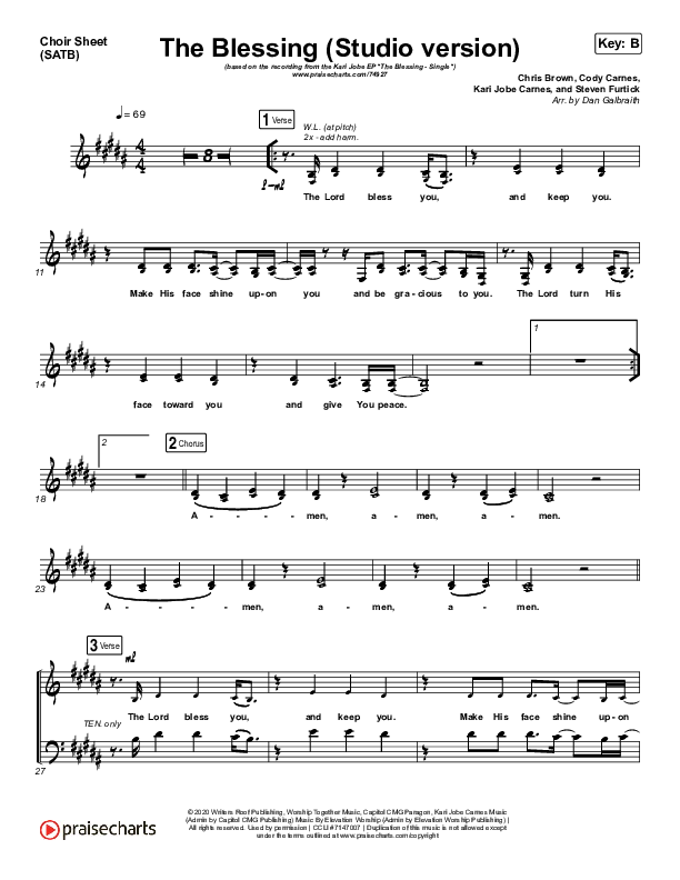 Download the Choir Sheet for The Blessing (Studio) by Kari Jobe / Cody Carnes, from the album The Blessing - Single. This song was arranged by Daniel Galbraith in the key of B, Bb.