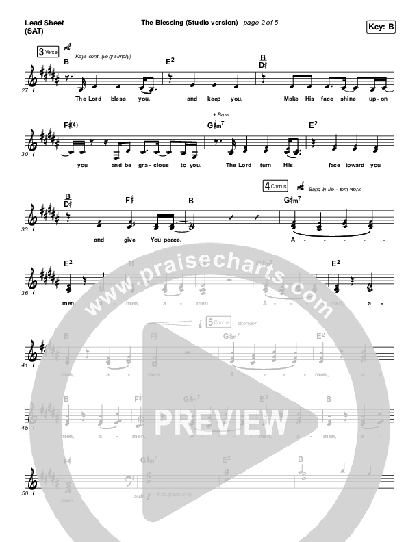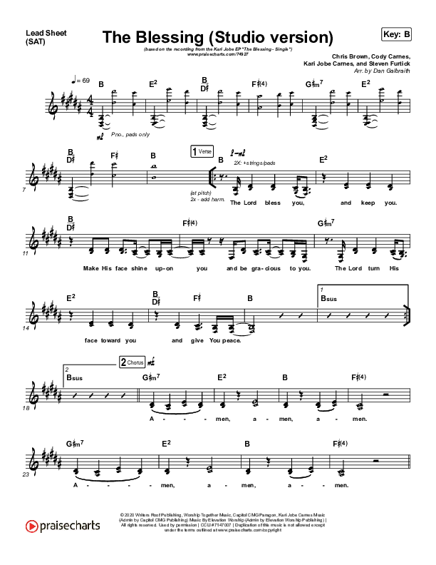 Download the sheet music for The Blessing (Studio) by Kari Jobe / Cody Carnes, from the album The Blessing - Single. This song was arranged by Daniel Galbraith in the key of B, Bb.