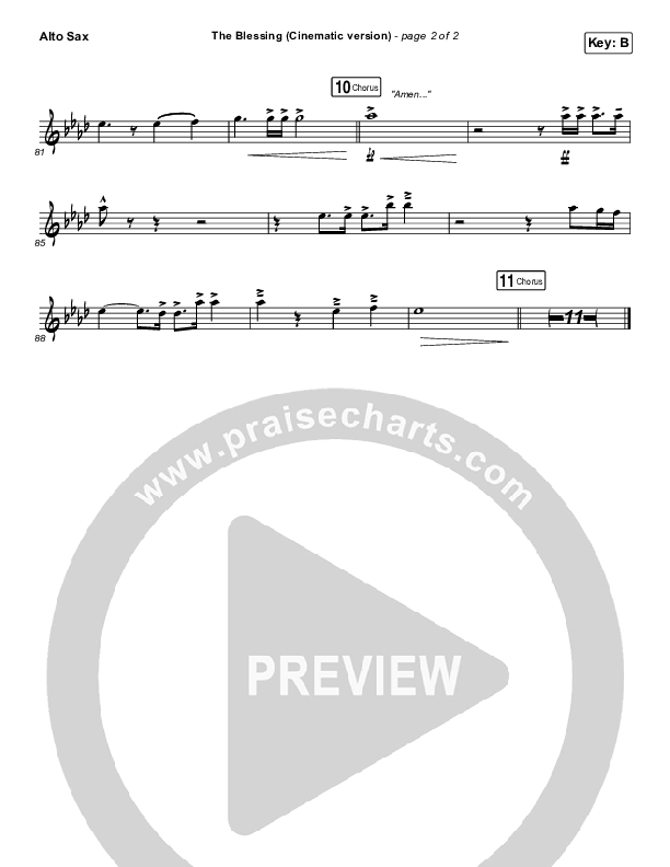 Download the AltoSax sheet music for The Blessing (Cinematic) by Kari Jobe / Cody Carnes, from the album The Blessing - Single. This song was arranged by Daniel Galbraith in the key of B, C.
