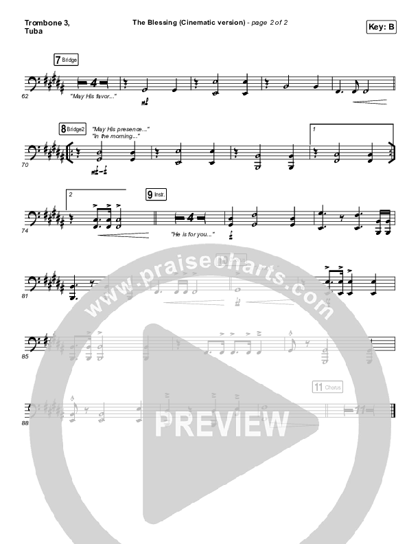 Download the Trombone 3/Tuba sheet music for The Blessing (Cinematic) by Kari Jobe / Cody Carnes, from the album The Blessing - Single. This song was arranged by Daniel Galbraith in the key of B, C.